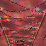 Love this look? Grab a few sets of these multi-color string lights to re-create this cozy festive ceiling display in your hallway. I love to use command hooks to keep my lights in place without fuss. It also makes it easy to shift the lights around for the best look!