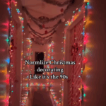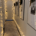 If you want maximum holiday spirit in your hallway, extend your Christmas lights to the floor and outline each section/door. At the entrance, a cute garland adds loads of fun.