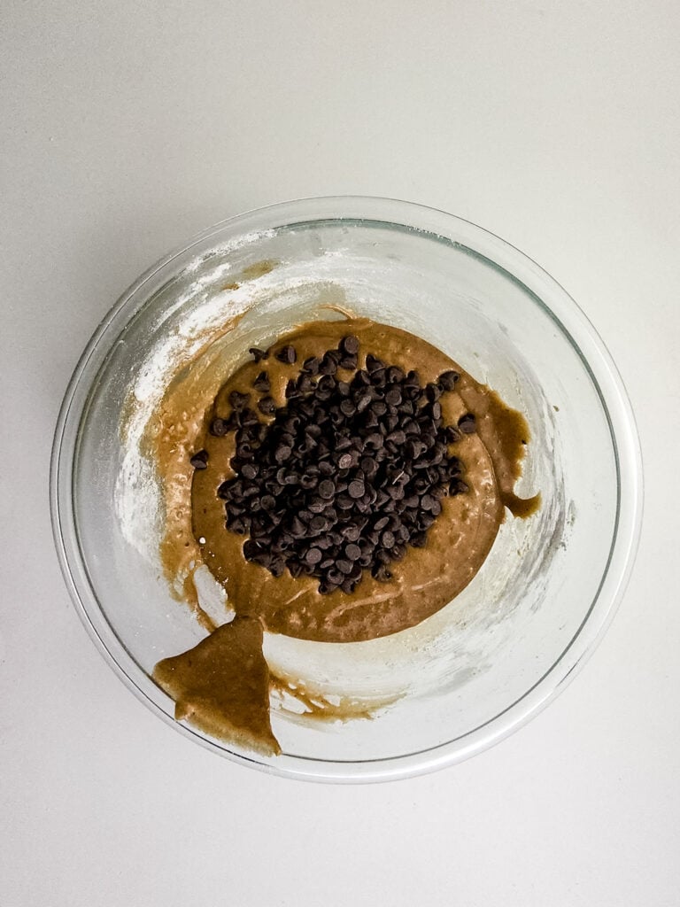 - Fold in the semi-sweet chocolate chips.