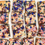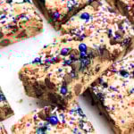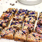 Looking for a festive treat to sweeten up your Fourth of July celebration? These easy cookie bars are just the thing! Topped with red, white, and blue sprinkles and packed with mini M&Ms in patriotic colors, they’re chewy, colorful, and guaranteed to be a crowd-pleaser at your summer cookout or fireworks party.